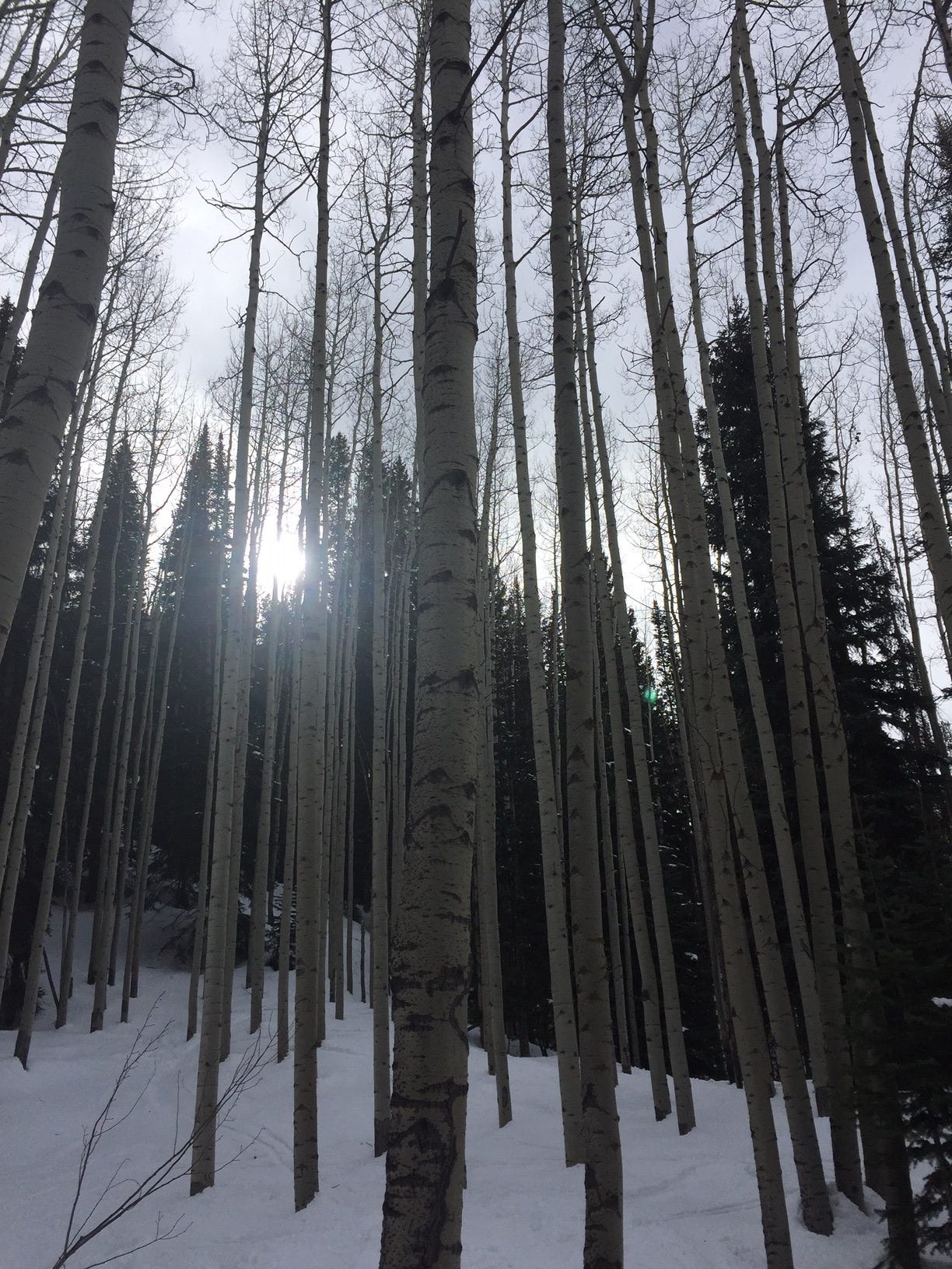 Pine trees are most helpful in this situation. Their broad reach and sturdy roots resist the oncoming snowslide. Many may succumb, but collectively they win the battle. Aspen trees, by contrast, become pillars of death – thick hardwood pylons around which sliding snow seems to accelerate. Many a hill-crosser unfortunate enough has been smashed against a powdery-white aspen trunk. Josh wishes they were in pine country as his descent accelerates.